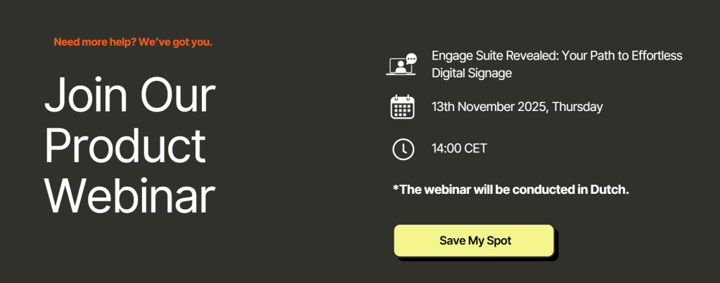 Complete your transition from the ZetaDisplay CMS to the Engage Suite before 15 December 2025. It only takes three easy steps and our team is ready to guide you along the way.