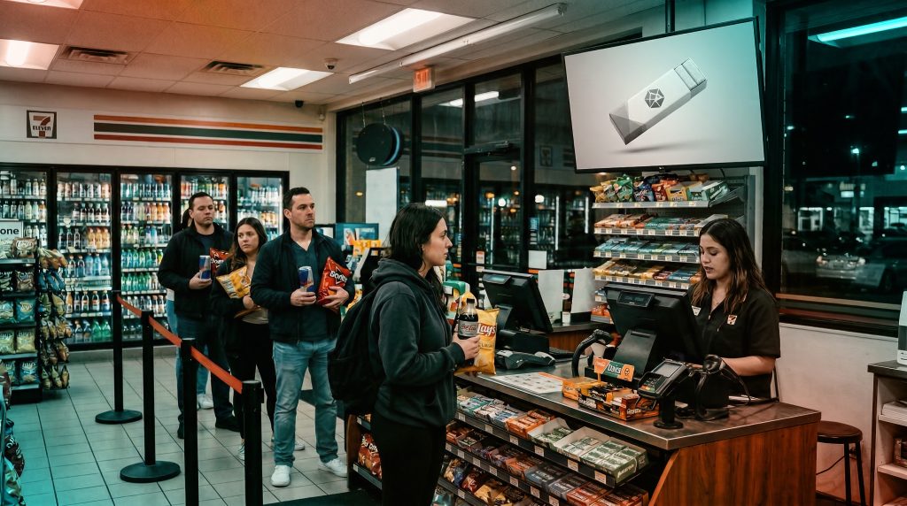 Checkout areas are high dwell-time zones where shoppers wait before completing their purchase. While the primary shopping decision is often complete, these spaces still offer valuable opportunities for messaging, particularly in environments where last-minute purchases are common.