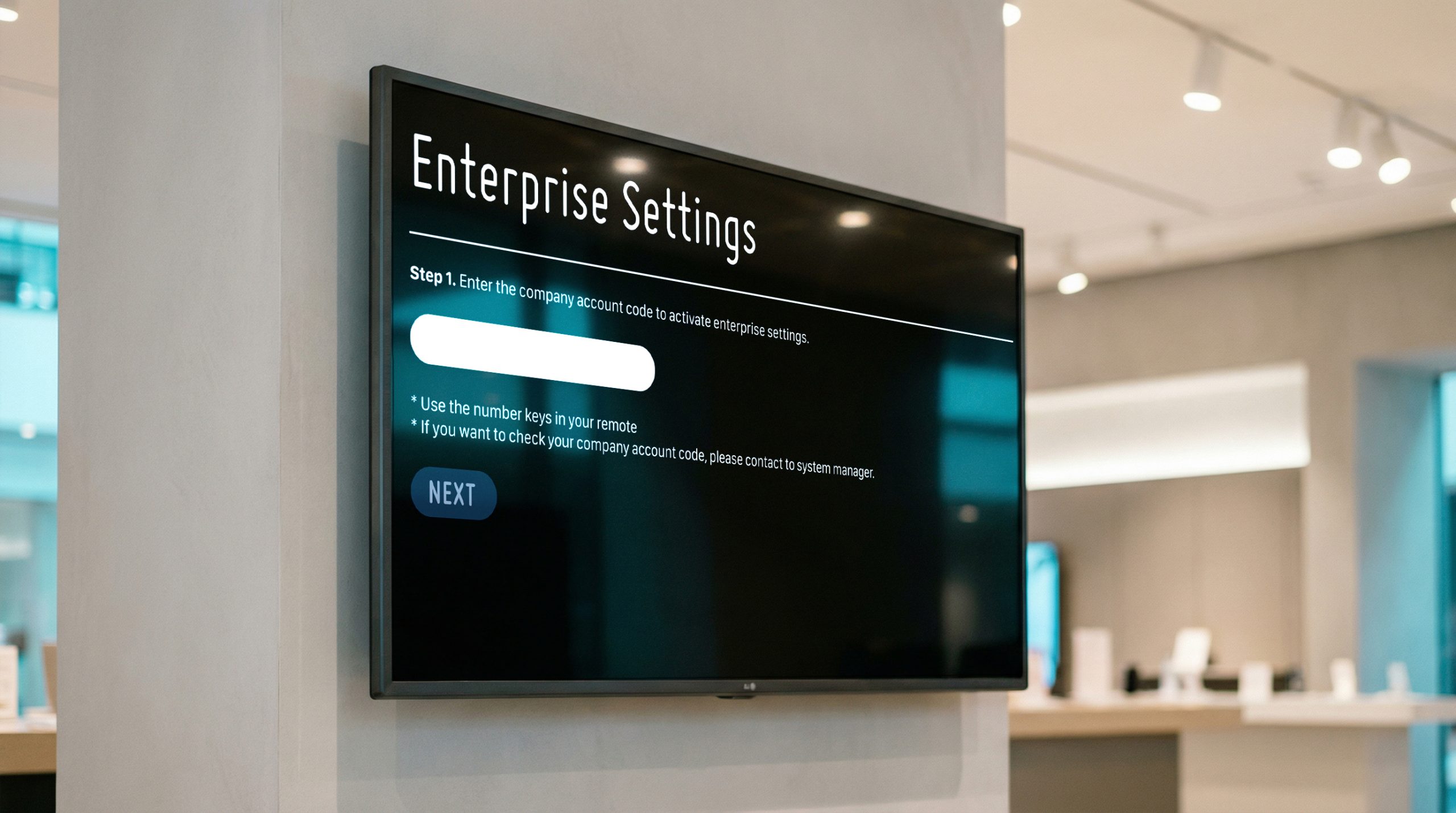 Set up is simple with no external media players, peripherals or downloads required. Simply use the enterprise code provided and input with the remote. This shortens setup time and simplifies deployment across multiple global locations.